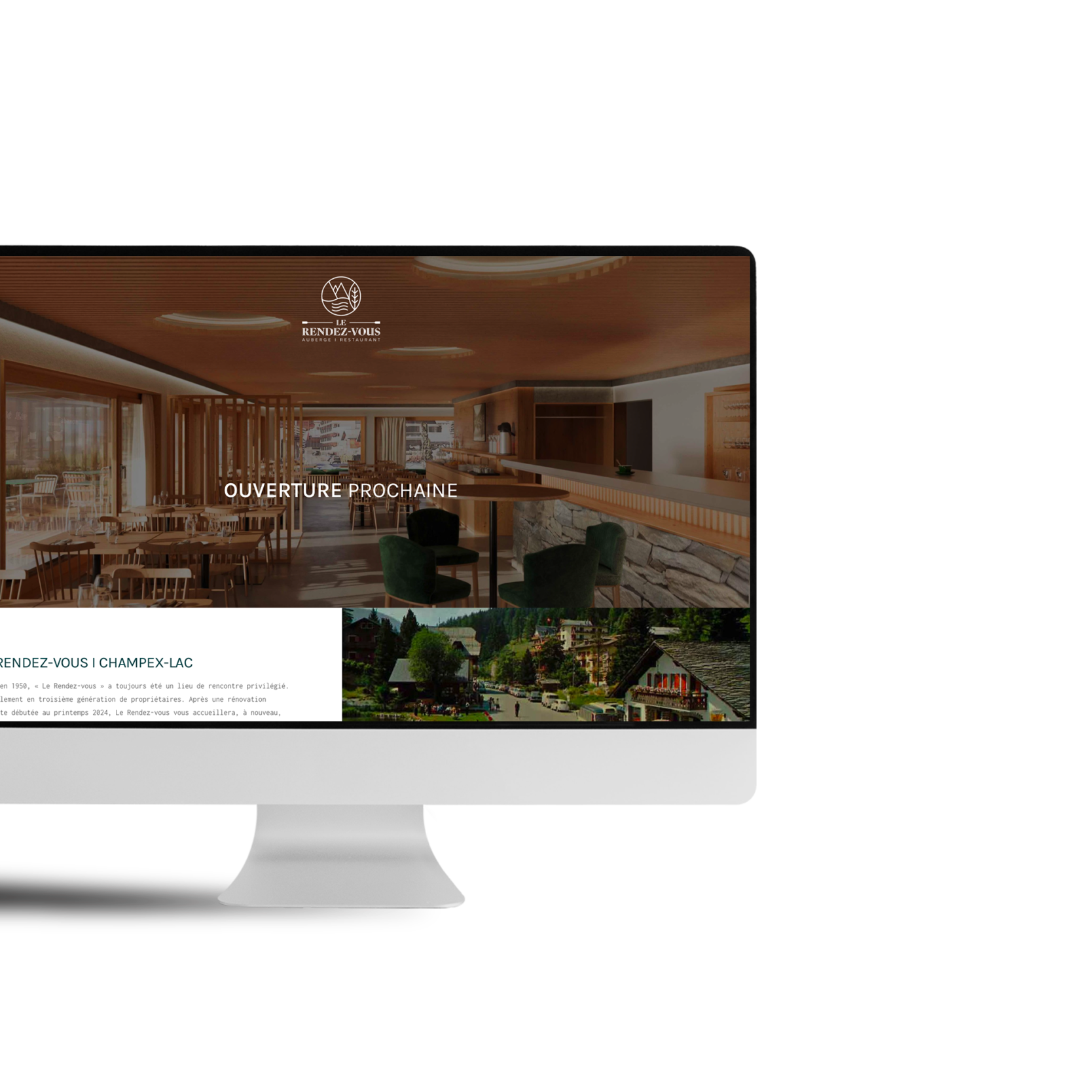 Nous avons conçu la nouvelle identité visuelle du Rendez‑vous, auberge et restaurant emblématique situé au bord du lac de Champex‑Lac, dans un cadre naturel exceptionnel entre montagnes et eaux cristallines.